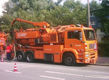 | Keywords: Vacumaster4.jpg Vacumaster der Hamburger Stadtentwässerung/Hamburg Wasser own Own photo 2007-06 GeorgHH Own work all rights released Public domain Hamburg Wasser Tank trucks in Germany Tank rigid trucks Orange trucks Sewerage service trucks MAN TGA |
