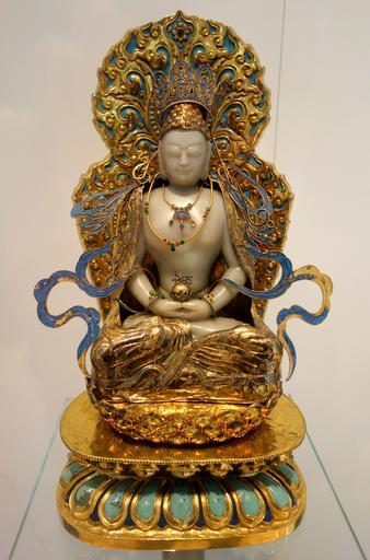 | Keywords: Vairochana Buddha, China, Qing dynasty, 19th century AD, jade, gilt bronze, enamel, pearls, kingfisher feathers - Royal Ontario Museum - DSC03754.JPG en Exhibit in the Royal Ontario Museum Toronto Ontario Canada This work is old enough so that it is in the public domain Photography was permitted in the museum without restriction 2013-10-08 13 50 22 own Daderot cc-zero Joey and Toby Tanenbaum Gallery of China at the Royal Ontario Museum Uploaded with UploadWizard Statues of the Qing Dynasty Vairocana |