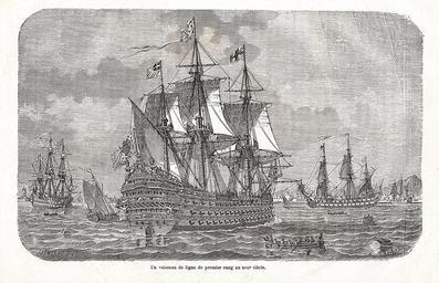 | Keywords: Vaisseau de ligne de premier rang XVIIème siècle.jpg fr Vaisseau de ligne de premier rang au XVIIème siècle Gravure par Pibaraud et Lebreton extrait de Histoire Nationale de la Marine et des marins français depuis Jean Bart jusqu'à nos jours page 5 par Jules Trousset Librairie Illustrée Paris 1870 en First-rate ship of the Line of the french navy in the 17th century Engraving by Pibaraud Lebreton from the National history of Navy and french sailors from Jean-Bart untill todays page 5 by Jules Trousset Librairie Illustrée Paris 1870 2012-01-15 own scan and light restoration by Jebulon With GIMP usual level improvements desaturation contrasts enhanced sharpening a very little Removing spots by cloning out cc-zero Uploaded with UploadWizard Engravings of ships Ships of the line of France 17th-century ships 19th-century engravings Quality images by Jebulon QualityImage |