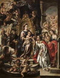| Keywords: Valdes leal-desposorios de santa catalina.JPG La obra representa los desposorios místicos de la virgen y mártir Santa Catalina de Alejandría con la Virgen María y el Niño Jesús que aparecen sentados en un trono circa 1680 1685 oil on canvas Size cm 99 127 5 Institution Museo de Bellas Artes Seville http //ceres mcu es/pages/Main accession number CE0179P http //ceres mcu es/pages/Viewer accion 41 Museo AMuseo MBASE Ninv CE0179P txt_id_imagen 1 txt_rotar 0 txt_contraste 0 txt_zoom 10 cabecera N viewName visorZoom PD-old-100 Paintings of Saint Catherine of Alexandria in Spain 17th-century paintings of Saint Catherine of Alexandria Mystic marriage of Saint Catherine of Alexandria Paintings of Jesus Christ by Juan de Valdés Leal Paintings of Virgin Mary by Juan de Valdés Leal Paintings of Christian saints by Juan de Valdés Leal Paintings by Juan de Valdés Leal in the Fine Arts Museum of Seville 17th-century paintings in the Fine Arts Museum of Seville 1680s paintings in Spain |