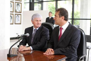 | Keywords: people indoor Uma reunião entre o presidente da Assembleia Legislativa, deputado Valdir Rossoni (PSDB), e membros do Sindicato dos Servidores da Assembleia Legislativa do Paraná (Sindilegis), agendada a pedido da entidade para esta segunda-feira (7), às 10 horas, no hall do prédio administrativo do Legislativo, acabou não acontecendo conforme o previsto, devido a um atraso de cerca de 20 minutos da representante dos servidores, Francine Bonamigo. Rossoni compareceu ao local do encontro pontualmente, acompanhado do 1º secretário da Mesa Executiva da Assembleia, deputado Plauto Miró (DEM), reafirmando a disposição da nova direção da Casa para o diálogo sempre franco e aberto. Com uma extensa agenda de compromissos, os deputados Rossoni e Plauto atenderam a imprensa enquanto aguardavam o comparecimento dos sindicalistas, e depois disso retornaram aos gabinetes da Presidência e da 1ª Secretaria. Foto: Nani Gois / Assembleia Legislativa do Paraná Acompanhe as notícias da Assembleia Legislativa do Paraná pelo twitter @legislativoPR Uma reunião entre o presidente da Assembleia Legislativa, deputado Valdir Rossoni (PSDB), e membros do Sindicato dos Servidores da Assembleia Legislativa do Paraná (Sindilegis), agendada a pedido da entidade para esta segunda-feira (7), às 10 horas, no hall do prédio administrativo do Legislativo, acabou não acontecendo conforme o previsto, devido a um atraso de cerca de 20 minutos da representante dos servidores, Francine Bonamigo. Rossoni compareceu ao local do encontro pontualmente, acompanhado do 1º secretário da Mesa Executiva da Assembleia, deputado Plauto Miró (DEM), reafirmando a disposição da nova direção da Casa para o diálogo sempre franco e aberto. Com uma extensa agenda de compromissos, os deputados Rossoni e Plauto atenderam a imprensa enquanto aguardavam o comparecimento dos sindicalistas, e depois disso retornaram aos gabinetes da Presidência e da 1ª Secretaria. Foto: Nani Gois / Assembleia Legislativa do Paraná Acompanhe as notícias da Assembleia Legislativa do Paraná pelo twitter @legislativoPR |