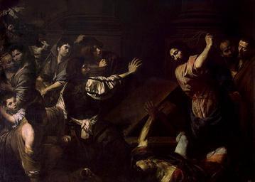 | Keywords: Valentin de Boulogne - Expulsion of the Money-Changers from the Temple - WGA24238.jpg between 1620 1625 Oil on canvas size cm 192 267 Institution Hermitage Museum object history credit line accession number WGA link 24238 http //www wga hu/art/v/valentin/expulsio jpg http //www wga hu/html/v/valentin/expulsio html PD-old-100 painting religious French 1601-1650 Valentin de Boulogne French paintings in the Hermitage 17th-century paintings of Jesus Christ Cleansing of the Temple WGA form painting WGA type religious WGA School French WGA time period 1601-1650 1620s paintings from France |