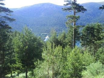 Keywords: Valle del río Moros.JPG es Valle del río Moros abajo en el fondo del valle se aprecia el embalse de Las Tabladillas y al fondo el Pasapan pies de la Mujer Muerta El Espinar Segovia España own Txo 2008-07 San Rafael Segovia El Espinar Valle del río Moros La Mujer Muerta