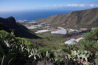 Keywords: valley cliff mountains nature landscape fruitful prickly pear sea island clouds road serpentine agriculture plantations slide covered greenhouses