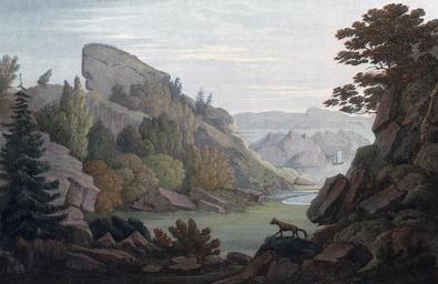 | Keywords: Valley in Heliesund (JW Edy plate 08).jpg Artwork Creator John William Edy en Valley in Heliesund No VIII VIEW FROM A VALLEY ON THE SOUTH SIDE OF HELIESUND This small undulating spot is enclosed with rocks on three of its sides; having gentle rills of water meandering through it where the snipe and woodcock breed A disruption of the rocks has nearly closed the entrance Similar casualties in some parts of Norway have buried in an instant houses and families The dilation of the strata by frosts loosens the stones; which in their fall carry every thing with them and form a vast heap of rubbish at the bottom At the extremity of the valley is a landing-place constructed of timber and at a little distance are rocky islands beyond which the main land is seen In front is a majestic rock of granite seated on an inclined plane apparently ready to glide into the ocean This spot being well sheltered from the bleak winds is the chosen retreat of a colony of wild bees; their nests are suspended from the branch of the pine or hawthorn in the form of a pine apple and of a lead colour The bees are small and their honey uncommonly good They collect their sweets from a few flowers the wild thyme and other odoriferous herbs and plants from the river's bank to the mountain's top with great care and industry Collapse bottom http //urn nb no/URN NBN no-nb_digibok_2011072910001 Boydell's picturesque scenery of Norway London 1820 Plate no 8 p 89 in scanned copy no-nb_digibok_2011072910001 PD-Art-100 John William Edy Boydell's picturesque scenery of Norway Søgne |