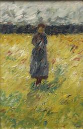 | Keywords: Vallflicka (Carl Trägårdh) - Nationalmuseum - 117884.tif Carl Trägårdh sv I bildens mitt finns en flicka klädd i gråviolett klänning stående på en äng Gräset är målat i gult grönt och rött I fonden ett skogsbryn målat som ett mörkt gråviolett band i höjd med flickans huvud Himlen är målad i grå ljust blå och rosa toner Tekniken är skissartad och motivet är ytterst summariskt sammanfattat header I bildens mitt finns en flicka klädd i gråviolett klänning stående på en äng Gräset är målat i gult grönt och rött I fonden ett skogsbryn målat som ett mörkt gråviolett band i höjd med flickans huvud Himlen är målad i grå ljust blå och rosa toner Tekniken är skissartad och motivet är ytterst summariskt sammanfattat end other date decade 1890 Olja på duk Size cm 30 5 46 5 Institution Nationalmuseum Stockholm Signerad Trägårdh stämpelsignatur nere till höger accession number 117884 NM 7039 place of creation Erik Cornelius / Nationalmuseum Nationalmuseum Stockholm cooperation project Licensed-PD-Art PD-old-auto PD-Nationalmuseum_Stockholm 1899 Media contributed by Nationalmuseum Stockholm 2016-10 Paintings in the Nationalmuseum Stockholm Carl Trägårdh |