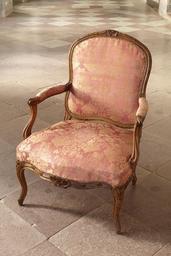 | Keywords: Valnötsstol med mönstrat fibertyg (bomull och obearbetad fiber av manillahampa), från 1750 - Skoklosters slott - 98199.tif LSH artwork H Amand möbelsnickare sv Svängda ben med käl och bandomlindade vulstknippen som direkt övergår i sargen på samma sätt dekorerad ram till stoppad konturerad rygg Mitt på sargens framsida och på ryggens överstycke skulpterade rosor och rocailler <br/>Utåtsvängda armstöd med stoppning Sits och rygg samt armstödens stoppning klädda med rött-gulmönstrat fibertyg bomull och obearbetad fiber av manillahampa <br/>Klädseln spikad med mässingstännlikor <br/>Omkring 1700-talets mitt <br/>Tygklädseln från ca 1840 <br/>Stämplade på ena ryggstolpens baksida ME H AMAND menusier ebeniste Paris <br/>Märkta <br/>1775 1 På sargens bakre insida J med blyerts <br/>1775 2 På sargens främre insida I samt oläslig skrift med blyerts på vänstra och högra insidan xe <br/>1775 3 Märkt s 1775 2 men Ret på vänstra insidan <br/>1775 4 På sargens främre insida I på dess vänstra insida + med blyerts På sidornas insida inristat romb <br/>1775 5 På sargens främre insida I med blyerts <br/>1775 6 På sargens främre insida x med svart färg tre ggr På sidornas insida 3 med blyerts På bakre insidan L original caption Valnötsstol med mönstrat fibertyg bomull och obearbetad fiber av manillahampa från 1750 <br/> Nyckelord Stol Föremålsbild Inredning ca 1750 size mm 700 760 1020 SKO M E place of origin original filename sm_dig10815 23029 inventory number SKO 1775 98199 CC-BY-SA Erik Lernestål <gallery caption Different images of same object > File Stol med randigt möbelöverdrag - Skoklosters slott - 98198 tif </gallery> Chairs Interiors Erik Lernestål Media contributed by LSH unmatched creator Media contributed by LSH 2014-11 |