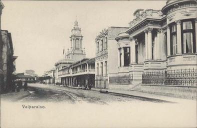 Keywords: Valparaiso..JPG es Calle Condell con Palacio Lyon en primer plano Unknown Unknown author PD-Chile Uploaded with UploadWizard Postcards of Valparaíso Calle Condell Iglesia del Espíritu Santo Valparaíso