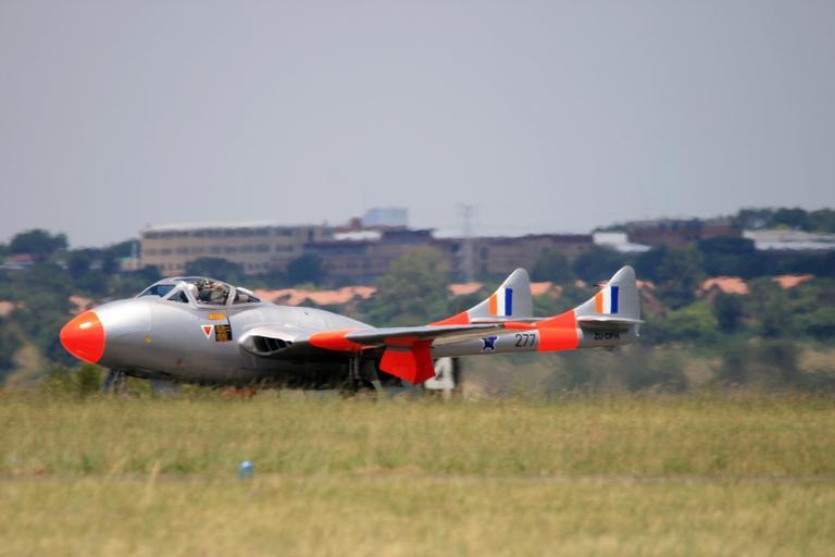 Keywords: vampire jet jet aircraft runway take-off shiny orange dayglo airshow