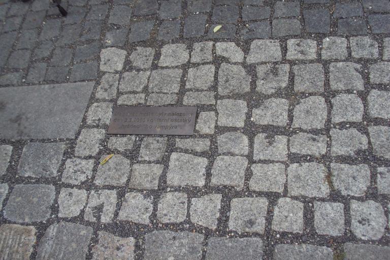 Keywords: Vampýr v Hrádku.JPG cs Deska označující hrob vampýra v uličce poblíž středu města own Zákupák 2013-08-31 Hrádek nad Nisou Plaques in Liberec District