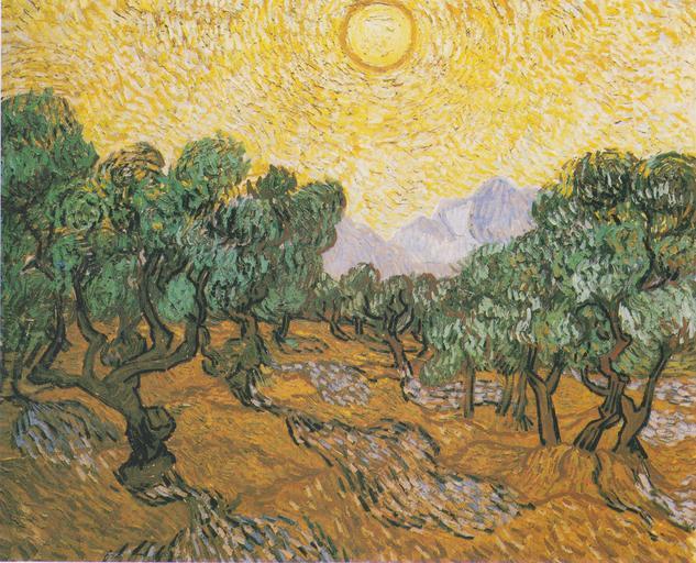 | Keywords: Van Gogh - Olivenbäume mit gelbem Himmel und Sonne.jpeg  Artwork Creator Vincent van Gogh Saint-Rémy 1889 11 oil canvas cm 73 66 92 71 Minneapolis Institute of Arts Gallery 355 http //www artsmia org/viewer/detail php v 12 id 1218 The Minneapolis Institute of Arts<br/>http //www vangoghgallery com/catalog/Painting/360/Olive 20Trees 20with 20Yellow 20Sky 20and 20Sun html vangoghgallery com object history credit line The William Hood Dunwoody Fund No signature There is a stencil on the reverse of the lining fabric along with an inscription K O in black paint Van Gogh catalogues 710 1856 accession number 51 7 repro from artbook Vincent van Gogh - Olive Trees with Yellow Sky and Sun jpg PD-old-100-1923 1890 DEFAULTSORT Van Gogh 1889 11 Olive Trees Minneapolis Institute of Arts Olive Trees with yellow sky and sun |