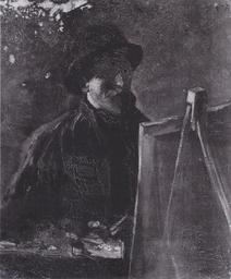 | Keywords: Van Gogh - Selbstbildnis mit Filzhut vor der Staffelei.jpeg Artwork Creator Vincent van Gogh Selbstbildnis mit Filzhut vor der Staffelei Paris spring 1886 oil canvas 46 5 x 38 5 cm Institution Van Gogh Museum Amsterdam accession number object history credit line Van Gogh catalogues 181 1090 repro from art book PD-old-100 Self-Portrait with Felt Hat at the easel by Vincent van Gogh | ||||