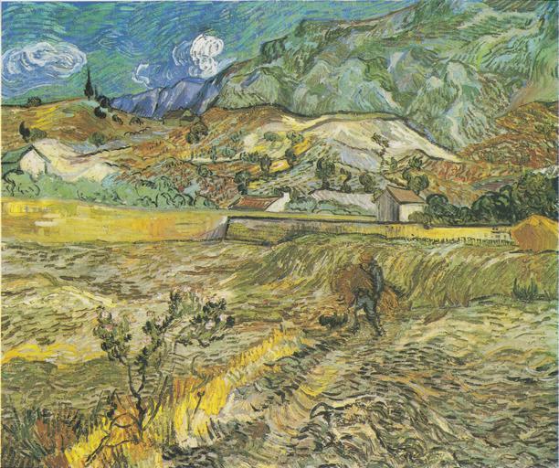 | Keywords: Van Gogh - Weizenfeld hinter dem Hospital Saint-Paul mit Bauer.jpeg Artwork Creator Vincent van Gogh de Weizenfeld hinter dem Hospital Saint-Paul mit Bauer en Enclosed Wheat Field with Peasant / Landscape at Saint-Rémy / Wheat Field behind Saint-Paul Hospital with farmer Saint-Rémy early date 1889 10 oil canvas in 29 36 25 institution Indianapolis Museum of Art Sidney and Kathy Taurel gallery - H206 44 74 credit line Gift of Mrs James W Fesler in memory of Daniel W and Elizabeth C Marmon Van Gogh catalogues 641 1795 http //www imamuseum org/collections/artwork/landscape-saint-r C3 A9my-enclosed-field-peasant-gogh-vincent-van The Indianapolis Museum of Art<br/>http //www vangoghgallery com/catalog/Painting/110/Enclosed 20Wheat 20Field 20with 20Peasant html vangoghgallery com repro from artbook Other versions PD-old-100-1923 1890 DEFAULTSORT Van Gogh 1889 Enclosed Wheat Field with Peasant Indianapolis Museum of Art Enclosed Wheat Field with Peasant by Vincent van Gogh |