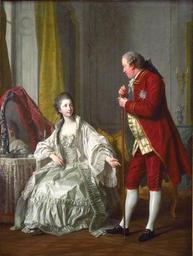 | Keywords: Van Loo - Le Marquis de Marigny et de sa femme (1769).jpg Artwork Creator Louis-Michel van Loo Le Marquis de Marigny et sa femme Alternate titles Frère cadet de la marquise de Pompadour Marigny 1721-1781 fut le directeur des Bâtiments de Louis XV de 1751 à 1773 Il est représenté avec sa jeune épouse de dix-huit ans née Marie-Françoise Constance Julie Filleul 1751 - 1822 deux années après leur mariage 1769 Oil on canvas Size m 0 975 1 296 Museum Louvre Sully - 2 e étage - Boucher - Salle 46 00000104461 louvre online 11556 Christie's online 3072179 5192 14 object history by 1781 Abel-François Poisson de Vandières marquis de Marigny et de Ménars 1727-1781 inheritance marquise de Marigny inheritance Adélaïde Filleul acquisition comte August-Charles-Joseph de Flahaut acquisition Lady Emily Fitzmaurice acquisition A E H Digby ProvenanceEvent 1951-06-20 sale Digby Paris by 1951 Agnew ™s ProvenanceEvent 1994-06-10 auctioned Christie's London price GBP 331500 ProvenanceEvent 1994 gift Louvre Paris Société des amis du Louvre credit line Don de la Société des Amis du Louvre 1994 accession number louvre number 1994-17 00000104461 Sammyday 2010-10-23 <gallery> Van Loo - Marigny cadre JPG with frame Louvre-peinture-francaise-p1020331 jpg low resolution </gallery> PD-old-100 DEFAULTSORT 1769; Poisson de Vandière Paintings by Louis-Michel van Loo French paintings in the Louvre - Room 46 Abel-François Poisson de Vandières 1760s oil on canvas paintings in France 1760s paintings in the Louvre 1760s portrait paintings from France 1769 paintings in France 18th-century family portraits 18th-century oil portraits of sitting women at full length 18th-century oil portraits of standing men at full length 18th-century people of France 18th-century portrait paintings in interiors 18th-century portrait paintings in the Louvre 18th-century profile portraits of men Canes in portrait paintings Cosmetics in art Deshabille in art Dressing tables Eye contact in art Females with white dresses in art Marchionesses of France Gift of the Société des Amis du Louvre Habit à la française in portrait paintings Leaning people in art Male shoes in portrait paintings Paintings of people from France Marigny Panniers clothing in portrait paintings Portrait paintings of wedded couples Portraits with mirror Powdered hair in art Powdered wigs in art Rococo interiors Sash of the Order of the Holy Spirit in portrait paintings Star of the Order of the Holy Spirit in portrait paintings Taken with Canon PowerShot G10 Uploaded with UploadWizard 1760s dresses Rococo portraits |