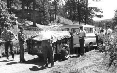 | Keywords: mennonite board of missions mennoniteboardofmissions frontier boys camp frontierboyscamp emotionally disturbed emotionallydisturbed donations carry-all carryall boys franconia mennonite conference franconiamennoniteconference colorado divide blackandwhite monochrome outdoor black and white Caption: MYFs of 50 Franconia Mennonite Conference congregations donated $1900 toward the $2000 goal to purchase a carry-all for Frontier Boys Camp. The carry-all and van are used for camping trips and to transport many boys to and from nearby Colorado Springs bus station. The 24 emotionally disturbed boys living at the camp come from different communities in eastern Colorado, with a high percenntage coming from Denver. Divide,Colorado,1964. Citation: Mennonite Board of Missions Photograph Collection. Mission to Divide, Colorado. IV-10-7.2 Box 2 Folder 41, Photo #04. Mennonite Church USA Archives - Goshen. Goshen, Indiana. Caption: MYFs of 50 Franconia Mennonite Conference congregations donated $1900 toward the $2000 goal to purchase a carry-all for Frontier Boys Camp. The carry-all and van are used for camping trips and to transport many boys to and from nearby Colorado Springs bus station. The 24 emotionally disturbed boys living at the camp come from different communities in eastern Colorado, with a high percenntage coming from Denver. Divide,Colorado,1964. Citation: Mennonite Board of Missions Photograph Collection. Mission to Divide, Colorado. IV-10-7.2 Box 2 Folder 41, Photo #04. Mennonite Church USA Archives - Goshen. Goshen, Indiana. |
