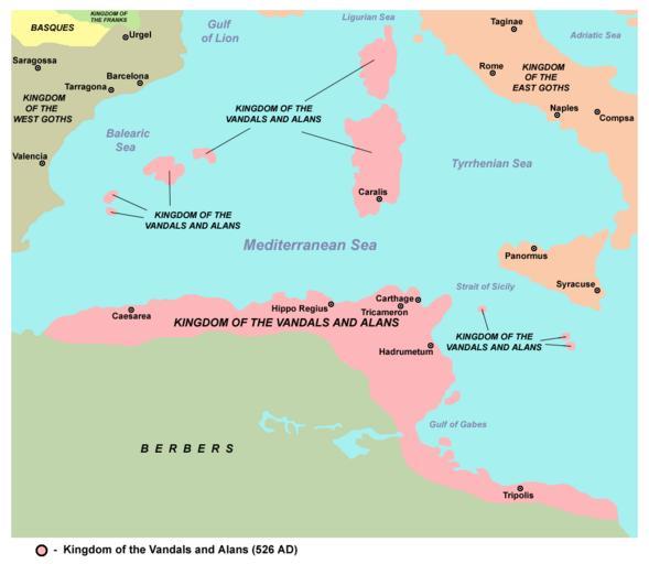 | Keywords: Vandal alan kingdom 526.png en Kingdom of the Vandals and Alans 526 AD own PANONIAN 2011 File Vandal alan kingdom 526-el png Ελληνικά References Main references historical maps of Europe and north Africa 526 AD http //www studenthandouts com/photo_gallery/Maps/Map_Europe_526_CE_Germanic_Migrations jpg http //www emersonkent com/images/germanic_roman_526 jpg http //rbedrosian com/Maps/muhamm6b jpg http //www globalsecurity org/military/world/europe/images/byz-map-526 jpg Secondary references about name of the Kingdom http //books google com/books id tOnQDfRU-poC pg PA170 dq 22kingdom+of+the+vandals+and+alans 22 hl sr ei HtuUTY6HHI3IswaAxvm0CA sa X oi book_result ct result resnum 5 ved 0CDwQ6AEwBA v onepage q 22kingdom 20of 20the 20vandals 20and 20alans 22 f false Herwig Wolfram The Roman Empire and its Germanic peoples University of California Press 1997 page 170 http //books google com/books id SXER_fLym9kC pg PA58 dq 22kingdom+of+the+vandals+and+alans 22 hl sr ei HtuUTY6HHI3IswaAxvm0CA sa X oi book_result ct result resnum 7 ved 0CEYQ6AEwBg v onepage q 22kingdom 20of 20the 20vandals 20and 20alans 22 f false Bernard S Bachrach A history of the Alans in the West from their first appearance in the sources of classical antiquity through the early Middle Ages Minnesota Press 1973 page 58 http //books google com/books id tGLN47tfT4UC pg PA69 dq 22kingdom+of+the+vandals+and+alans 22 hl sr ei AdyUTanfGcnJsgaV8LXICA sa X oi book_result ct result resnum 9 ved 0CFMQ6AEwCDgU v onepage q 22kingdom 20of 20the 20vandals 20and 20alans 22 f false Stephen Williams Gerard Friell John Gerard Paul Friell The Rome that did not fall the survival of the East in the fifth century Routledge 1999 page 69 Secondary references about locations of some important cities The Times History of Europe Times Books London 2002 Dragan Brujić Vodič kroz svet Vizantije Beograd 2004 Maps of the Vandals Maps of the Alan migrations Maps of the history of Algeria Maps of the history of Libya Maps of the history of Spain Maps of the history of Italy Maps of the history of France |