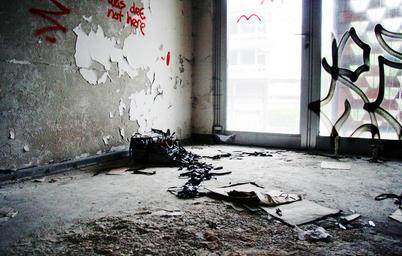 Keywords: vandalism graffiti lost place ground dirty paper garbage neglected leave uninhabited
