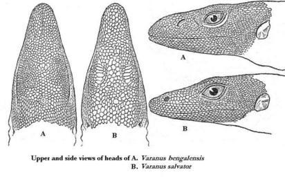 Keywords: Varanus.jpg Varanus head sketch from Fauna of British India Boulenger G A A Varanus bengalensis B Varanus salvator Monitor lizard PD-old Varanus salvator heads Varanus bengalensis Varanus heads Third eye in Vertebrata