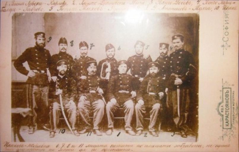 | Keywords: Vasil Levski in the II Legion.jpg en Vasil Levski in the II Bulgarian Legion bg Васил Левски заедно със свои д уга и от вто ата бълга ска легия в Белг ад Снимката е п авена в пе иода от късната есен на 1867г до началото на 1868г Фев уа и Апостола се азболява и се лекува извън легията а снимката личи следния надпис 1 Васил Левски Ка лово 2 Х исто Д яновски Тулча 3 Панчо Досев 4 Пенчо Га ибалди Габ ово 5 Петъ Тихов Русчук 9 Х Д Атанасов Тулча 10 Иван Цанков Же авна 6 7 8 и 11лицата познати но имената заб авени ни един от д уга ите не може да си п ипомни 2012-02-19 http //strannopriemnicata wordpress com/2008/04/27/vasil-levski-6/ unknown photographer 1867-68 cc-zero Uploaded with UploadWizard Vasil Levski Second Bulgarian Legion |