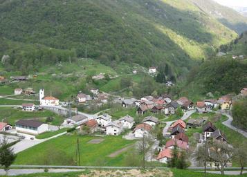 Keywords: VasKneza-BaskaGrapa1.jpg Kneža village in Slovenia Baška grapa own 2008-04 Sl-Ziga Kneža