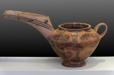 | Keywords: Vassiliki ware with long neck archmus Heraklion.jpg en Vasiliki ware long-neck pot with characteristic mottled decoration created by controlled firing in the petter's kiln Found at Vasiliki in Ierapetra where there was a flourishing town which was destroyed by fire uncontrolled circa 2200 BCE The area is considered the main centre of this particular vessel type Vasiliki 2400 - 2200 BCE fr Poterie de Vasiliki type théière à long bec à décor tacheté caractéristique obtenu par contrôle de la cuisson dans le four Trouvé à Vasiliki Iérapetra où se trouvait une cité florissante détruite par un incendie vers 2200 CE La région est considérée comme le centre principal de production de ce type d'objets Vasiliki 2400 - 2200 BCE institution Archaeological Museum of Heraklion 2015-02-23 11 11 24 own Jebulon other versions cc-zero Uploaded with UploadWizard 25th-century BC pottery Findings from Vasiliki Vasiliki ware in AM Heraklion Quality images by Jebulon QualityImage |