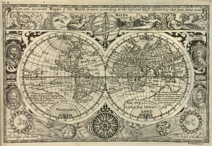 | Keywords: Vaughan - A New and accurate Mappe of the World, drawne according to the best and latest discoveries that have beene made.jpg Foldable map contained in The world encompassed by Sir Francis Drake being his next voyage to that to Nombre de Dios formerly imprinted; carefully collected out of the notes of Master Francis Fletcher preacher in this imployment and diuers others his followers in the same; offered now at last to publique view ¦ London 1628 compiled by Francis Drake nephew of the Admiral Source http //memory loc gov/intldl/drakehtml/ The Kraus Collection of Sir Francis Drake Further Information http //www loc gov/rr/rarebook/catalog/drake/drake-4-famousvoy html The Famous Voyage The Circumnavigation of the World 1577 “1580 in Sir Francis Drake A Pictorial Biography by Hans P Kraus PD-old 1628 maps 1620s maps of the world 1628 Maps showing 17th-century history Maps in English Francis Drake |