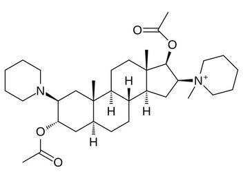 Keywords: Vecuronium.svg Chemical structure of vecuronium Own 23 32 24 May 2014 UTC Ed Edgar181 200px Acetate esters Steroidal alkaloids Piperidines Quaternary ammonium ions Neuromuscular blocking agents