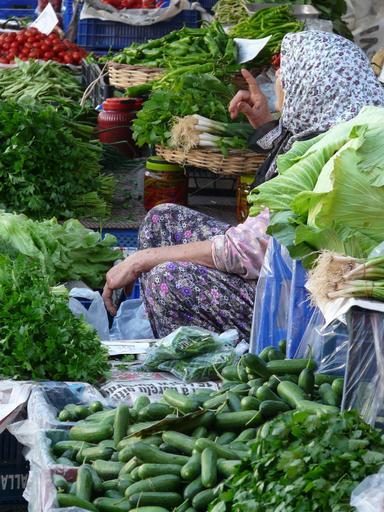 Keywords: vegetable market gemuesehaendlerin market vegetables sale trade cucumbers salad leek lettuce