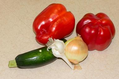 Keywords: vegetables pepperoni paprika zucchetti zucchini onion garlic red healthy vitamins nachtschattengewächs fiery food eat frisch onions