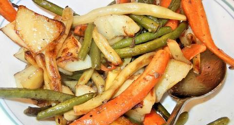 Keywords: vegetables roasted green beans carrots yellow beans garlic