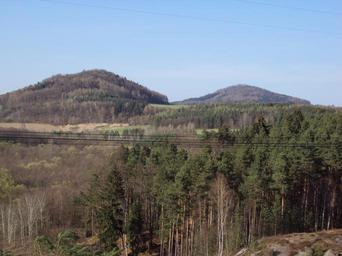 Keywords: Velenický a Brništský vrch.jpg cs Velenický kopec vpředu vzadu Brništský vrch obojí Cvikovská pahorkatina z návrší u Nových Zákup own Zákupák 2010-04-17 50 42 11 746 N 14 40 4 625 E region CZ Brništský vrch Velenický kopec