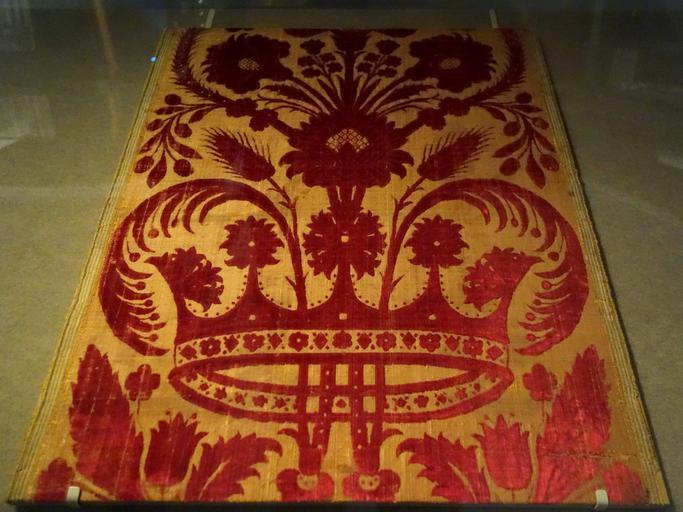 | Keywords: Velvet with gold ground, Italy, mid 17th century, cisele velvet in silk and gilt-silver - Royal Ontario Museum - DSC04380.JPG en Exhibit in the Royal Ontario Museum Toronto Ontario Canada This work is old enough so that it is in the public domain Photography was permitted in the museum without restriction 2013-10-08 16 09 20 own Daderot cc-zero Patricia Harris Gallery of Textiles Costume at the Royal Ontario Museum Uploaded with UploadWizard 17th-century textiles | ||||