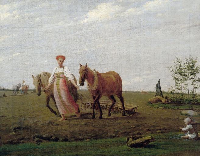 | Keywords: Venetsianov Spring.jpg File Aleksey Venetsianov - а пашне Весна - Google Art Project jpg Creator Alexey Venetsianov Spring First half of 1820ies From http //www tretyakovgallery ru/russian/viewlarge php itemsid 308 PD-old-100 Springtime Venetsianov Sarafan Paintings of women with horses |