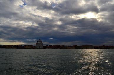 Keywords: venice water sky italy bay channel building sun clouds partly cloudy autumn duct the reflections of the sun the sun behind the cloud journey marina