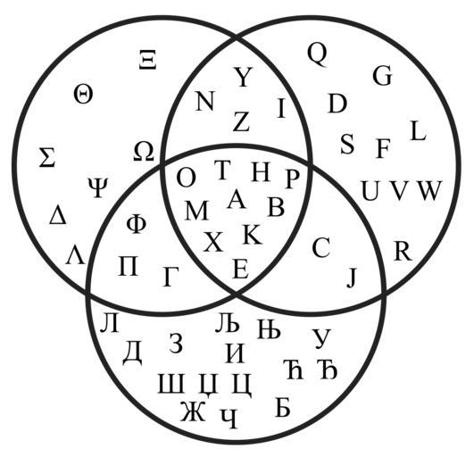 | Keywords: Venn diagram gr la sr.svg en In this version Serbian Cyrillic graphemes are used as opposed to Russian graphemes Y / У are considered different in the same way that Λ / Л are 2014-05-31 Venn diagram gr la ru svg Original by mate2code derivative work by Mozartkugeln thumb left In the original file the Russian Cyrillic characters are used instead 3-set Venn diagrams Greek alphabet Latin alphabet Cyrillic alphabet Serbian language Intersection set theory cc-by-sa-3 0 | ||||