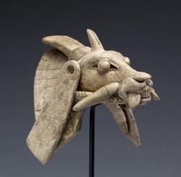 | Keywords: Veracruz - Deer Head Mask - Walters 2009202 - Left Side.jpg Fanciful headdresses were an essential component of performance costumes because they were crucial to the dancers' perceived transformation into the personage or spirit being in whose guise they performed In Veracruz figurines depicting warriors and a wide variety of performers often wear full-head masks which can be removed to reveal the person inside such as the amazingly detailed head-mask of a deer Post-fire paint adorns the animal with black-line curvilinear motifs on his long ear and bright blue-green pigment embellishing his upper lip Large protuberances on his snout and the single horn atop his head suggest a composite zoomorph rather than a biologically accurate rendering The deer was an important Mesoamerican food source and its hide was used for a variety of purposes including the wrapping of ritual bundles and as leaves pages for screen-fold manuscripts which contained all manner of knowledge-from history to religious mythology to astrology and astronomy The deer also was the animal spirit form of the mother of the seminal Mexican deity Quetzalcóatl and of the wife of the maize god among the Classic Maya AD 600-900 Late Classic earthenware post-fire paint cm 10 2 10 2 10 4 accession number 2009 20 2 80157 Stendahl Galleries Los Angeles date and mode of acquisition unknown John G Bourne 1960 by purchase Walters Art Museum Gift of John Bourne 2009 place of origin Veracruz Mexico Walters Art Museum license Veracruz Pre-Columbian pottery in the Walters Art Museum Archeological sites in Veracruz Deer in Pre-Columbian art Dance masks |