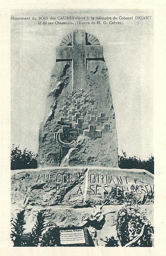 | Keywords: Verdun14.18-mémorial-07.jpg fr Verdun Meuse environs - Guerre 1914-1918 Le Bois des Caures Monument à la mémoire du colonel Driant des chasseurs qu'il commandait Oeuvre de M Grégoire Calvet - vers 1930 before 1935 Carte postale - édition H S à Verdun Meuse Auteur anonyme PD-old Émile Driant World War I memorials in France Battle of Verdun Postcards of Verdun Grégoire Calvet Uploaded with UploadWizard Moirey-Flabas-Crépion | ||||