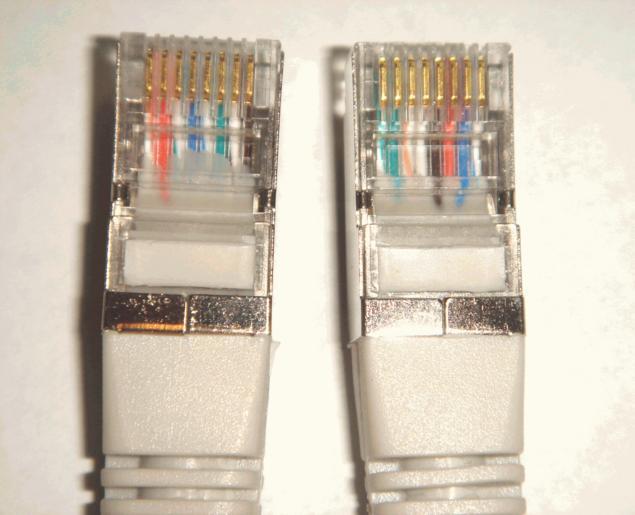 | Keywords: Vergleich 2von2 Crossoverkabel.gif a montagem do 2ºcabo está errada Comparison of connector wiring at both ends of an Ethernet crossover cable Note incorrect wire color sequence in each connector - suitable for use with 100BASE-T4 gigabit Public domain I took this photo myself ocrho RJ-45 connectors |