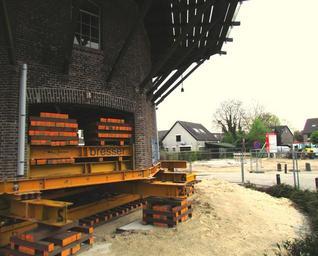 | Keywords: Verhoging Daams' molen (1).jpg Daams' molen in het centrum van Vaassen is tijdelijk 28 meter verplaatst om met een nieuw fundament bijna 5 meter hoger te komen staan en zo meer wind te kunnen vangen Op de achtergrond de eigenlijke plek van de molen own 2012-05-02 Apdency Daams' molen lifting project Cc-zero |