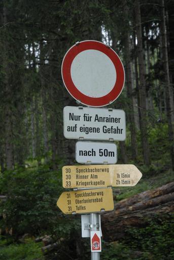 | Keywords: Verkehrstafel Rinn.JPG Fahrverbotstafel in Rinn Fahrverbot besteht laut Tafel nur für Anrainer According to additional board driving ban affects residents only own 2011-06 Haneburger 47 248074 11 505051 region AT_heading E Images by Haneburger Rinn Fingerposts in Tyrol Zeichen 250 Humor signs Road signs in Austria German language road signs Hiking and footpath signs in Tyrol state | ||||