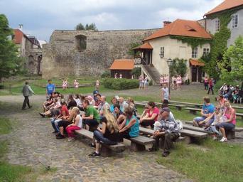 Keywords: Vernisáž KČT č.4.JPG cs Součástí vernisáže byl kulturní program na nádvoří zde usedají návštěvníci own Zákupák 2013-06-09 Vernisáž KČT ČL