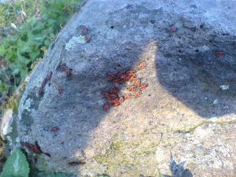 Keywords: Verőköltő bodobácsok.Pyrrhocoris apterus1.JPG en Firebugs Pyrrhocoris apterus in March near Deva Hunyad county hu Verőköltő bodobácsok Pyrrhocoris apterus marciusban Deva kozeleben Deva Dénes Dalma 2008 marcius 29 Pyrrhocoris apterus