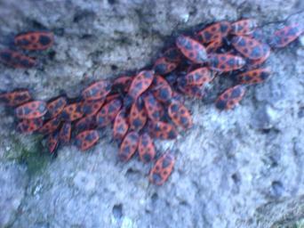 Keywords: Verőköltő bodobácsok.Pyrrhocoris apterus2.JPG en Firebugs Pyrrhocoris apterus in March near Deva Hunyad county hu Verőköltő bodobácsok Pyrrhocoris apterus marciusban Deva kozeleben Deva Dénes Dalma 2008 marcius 29 Pyrrhocoris apterus