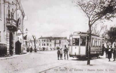 Keywords: Verona - Piazza San Zeno.jpg it Verona - Piazza San Zeno Cartolina d'epoca author Custom license marker 2013 12 24 PD-old Uploaded with UploadWizard Tram transport in Verona Historical trams in Italy