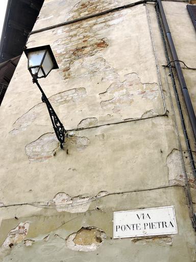 Keywords: verona wall lamppost cartel via stone bridge italy