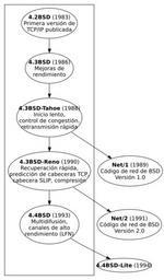 | Keywords: Versiones de TCP en BSD.svg Versiones de TCP en BSD es Varias de las primeras versiones del sistema operativo BSD junto con las caracterÃsticas TCP que ofrecÃan Las versiones de la derecha están públicamente disponibles Consisten en todo el código de red protocolos rutinas de kernel y programas como Telnet o FTP Son la base para muchos otros sistemas operativos eo Kelkaj el la unuaj versionoj de operaciumo BSD kun iliaj TCP eblecoj Versionoj dekstre estas publike uzeblaj Ili enhavas ĉian fontkodon retan protokoloj kernaj algoritmoj kaj programoj kiel Telnet aÅ FTP en Some of the first releases of the BSD operating systems along with their TCP features The releases to the right are publically available They include all the network code protocols kernel routines and programs like Telnet or FTP Fuente Este diagrama aparece en varios libros y páginas que explican la historia de TCP Por ejemplo en la página 4 de Ĉi tiu bildo troviÄ as ĉe pluraj libroj kaj paÄ oj kiuj klarigas historion de TCP Ekzemple en paÄ o 4 el This diagram appears at several books and pages which explain the history of TCP For instance at page 4 of TCP/IP Illustrated The Implementation Vol 2 Stevens W Richard; Wright Gary R Ed Pearson Education 1995 ISBN 020163354X A pesar de que la imágen salió por primera vez en el libro Advanced Programming in the UNIX R Environment Stevens W Richard Addison-Wesley 1992 ISBN 0-201-56317-7 Created with Graphviz Dominio público Autor de esta versión SVG Daniel Clemente Laboreo es Usuario 142857 Código Hecho con Graphviz Como no permite usar negrita en los nodos he usado la siguiente orden para generarlo <pre> dot -Tsvg tcp dot sed 's/\ <text >\ \ \ \ 19 <\/text>\ /\1<tspan style font-weight bold >\2<\/tspan> \3e/; s/<svg/<svg style font-size 12px /;' >tcp svg </pre> El código es Graphviz source <source lang dot > Versiones de TCP en BSD Procesar con dot -Tsvg tcp dot sed 's/\ <text >\ \ \ \ 19 <\/text>\ /\1<tspan style font-weight bold >\2<\/tspan> \3e/; s/<svg/<svg style font-size 12px /;' >tcp svg Motivos 1 Graphviz aún no permite usar negrita en los tÃtulos 2 No sé por qué pero las letras salen muy grandes digraph tcp subgraph clusterPr v42 label 4 2BSD 1983 \nPrimera versión de\nTCP/IP publicada ; v43 label 4 3BSD 1986 \nMejoras de\nrendimiento ; v43t label 4 3BSD-Tahoe 1988 \nInicio lento \ncontrol de congestión \nretransmisión rápida ; v43r label 4 3BSD-Reno 1990 \nRecuperación rápida \npredicción de cabeceras TCP \ncabecera SLIP compresión ; v44 label 4 4BSD 1993 \nMultienvÃo \ncanales de alto\nrendimiento LFN ; edge weight 100; v42 -> v43 -> v43t -> v43r -> v44 ; Hace falta un nodo más para que se alinie bien falso style invis; v44 -> falso style invis; n1 label Net/1 1989 \nCódigo de red de BSD\nVersión 1 0 ; n2 label Net/2 1991 \nCódigo de red de BSD\nVersión 2 0 ; v44l label 4 4BSD-Lite 1994 ; v43t -> n1 ; v43r -> n2 ; v44 -> v44l ; </source> SVG network diagrams Timelines Transmission Control Protocol Network infrastructure Images with Graphviz source code |