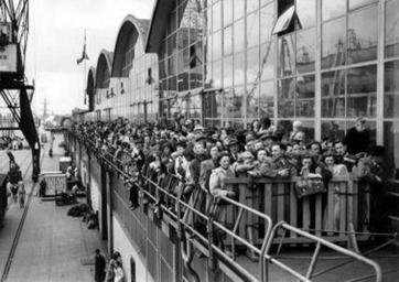 | Keywords: emigranten arch window glass pane women people ss volendam ssvolendam canada blackandwhite monochrome black and white Spaarnestad Photo/SFA001009986 Emigranten naar Canada wachten in Rotterdam tot zij aan boord kunnen van de S.S. "Volendam". Nederland, Rotterdam, 15 mei 1951. Spaarnestad Photo/SFA001009986 Emigranten naar Canada wachten in Rotterdam tot zij aan boord kunnen van de S.S. "Volendam". Nederland, Rotterdam, 15 mei 1951. | ||||