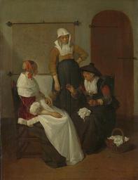 | Keywords: Vertrouwelijk onderhoud Rijksmuseum SK-A-685.jpeg accession number SK-A-685 nl Het vertrouwelijk onderhoud Interieur met drie vrouwen Een oude koopvrouw met een mand en een berkenmeier in de hand vertelt de laatste roddels aan een jonge zittende vrouw de vrouw des huizes Een staande dienstmaagd luistert mee Aan de wand hangt een landkaart drager Height cm 47 drager Width cm 36 exhibition history 2011-2012 Vermeer's Women Secrets and Silence Cambridge 2010-2010 The Villa Vauban-Musée d'Arte de la Ville de Luxembourg A Unique museum Luxembourg 2006-2006 Prenten in de Gouden Eeuw van kunst tot kastpapier Rotterdam Institution Rijksmuseum Technique oil panel object history Acquisition 1880 object type Potential derivatives exist check http //commons wikimedia org/w/index php search Rijksmuseum+SK-A-685 this search PD-US PD-old-100 Data and photography rights All data and all images made available through the API are either in the public domain or are subject to a CC0 license https //www rijksmuseum nl/en/api/terms-and-conditions-of-use cc-zero place of creation http //www rijksmuseum nl/collectie/SK-A-685 Vertrouwelijk onderhoud Q17322124 Uploaded with GWToolset Vertrouwelijk onderhoud Rijksmuseum SK-A-685 http //www rijksmuseum nl/media/assets/SK-A-685 Images uploaded by Fæ Images from the Rijksmuseum Paintings by Quiringh Gerritsz van Brekelenkam in the Rijksmuseum Amsterdam Quiringh Gerritsz van Brekelenkam |