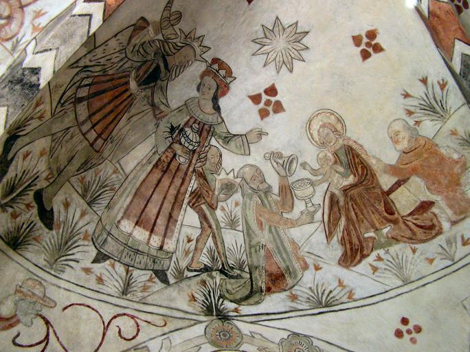 Keywords: Vesterø kirke5.jpg Vesterø Kirke Læsø Kalkmalerier own own photo 2005-07 Gunnar Bach Pedersen PD Vesterø Kirke Frescos in churches in Denmark Three Wise Men GunnarBach