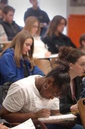 | Keywords: Vet Student Wisc 2005.jpg en Veterinary students at the School of Veterinary Medicine at the University of Wisconsin-Madison take notes during classroom lecture in June 2005 own Tim1965 2005-06 Veterinary education Education in the United States People sitting in lecture halls Students in the United States Women writing |